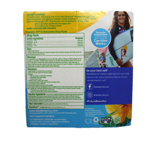 Alba Botanica Hawaiian Sunscreen SPF50 Coconut Clear Spray 8 Oz(2 PK)BACKDATED