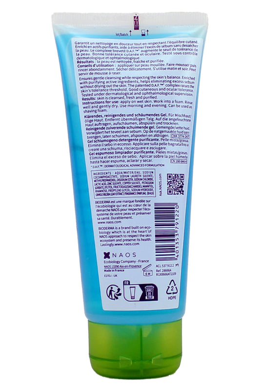 Bioderma Gel Moussant Purifying Cleansing Foaming Gel Combination Oily Skin 3.4 Fl Ounce