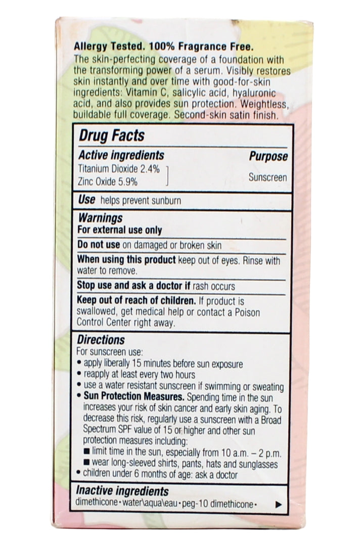 Achieve a flawless complexion with this innovative serum foundation, designed to enhance your skin's natural radiance. Infused with SPF 25 for daily sun protection, it offers buildable coverage that evens skin tone and conceals imperfections. The lightweight formula blends effortlessly for a natural look, while nourishing ingredients help improve skin clarity over time. Suitable for all skin types, this product is perfect for those seeking a fresh and luminous finish. Enjoy a flawless appearance all day long with added skincare benefits.
