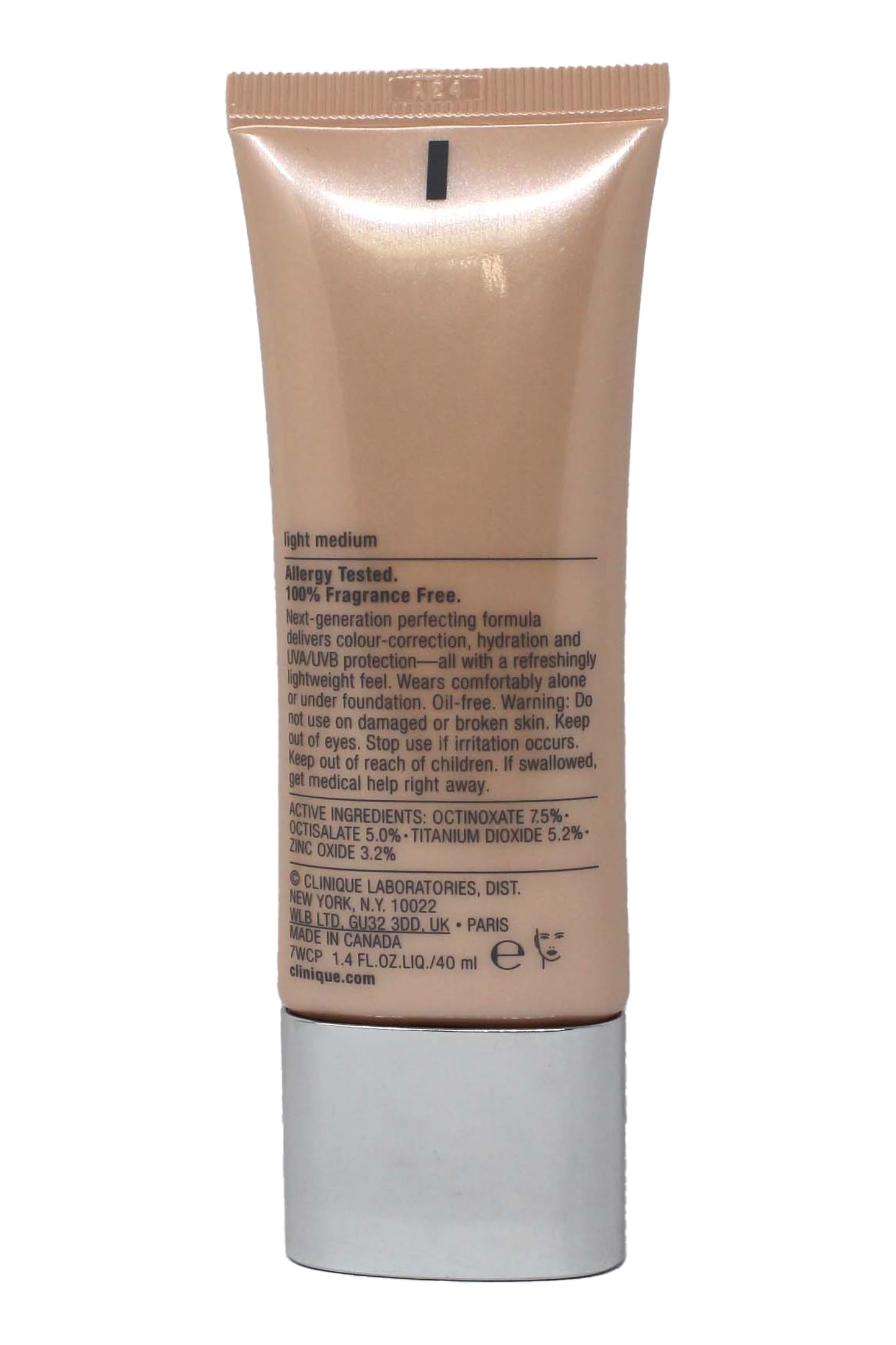 A CC cream that hydrates, corrects color, and provides SPF 30 protection. The Light Medium shade suits light to medium skin tones.