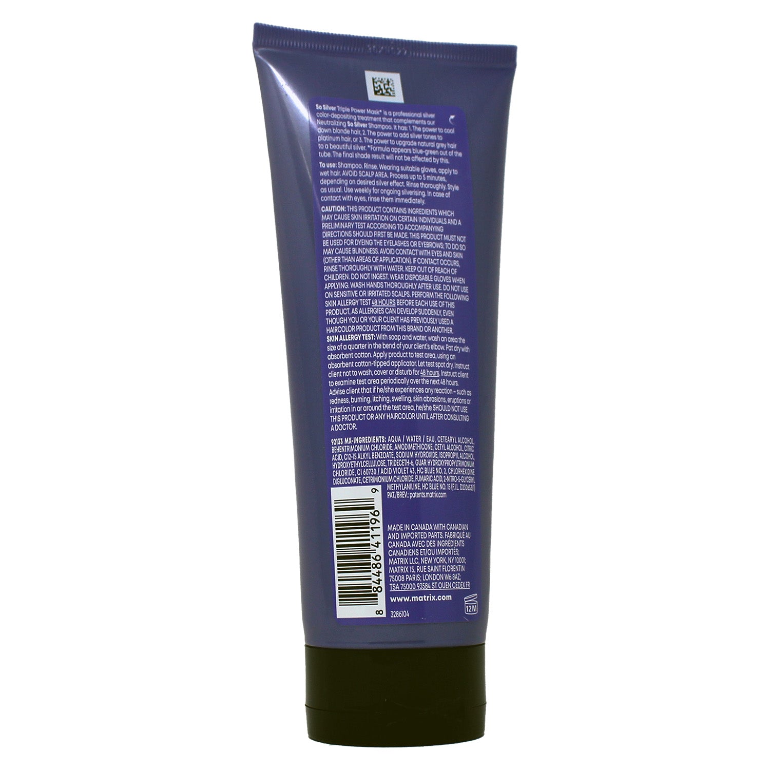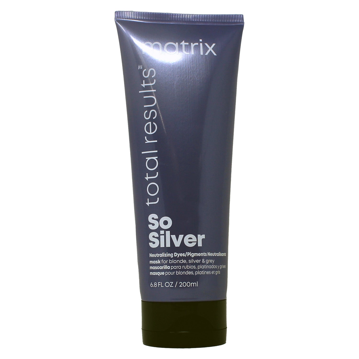 Matrix So Silver Toning Purple Hair Mask deeply conditions and repairs damaged blonde and silver hair, neutralizing yellow tones. Ideal for color-treated hair. Vegan. 6.8 oz. Packaging may vary.